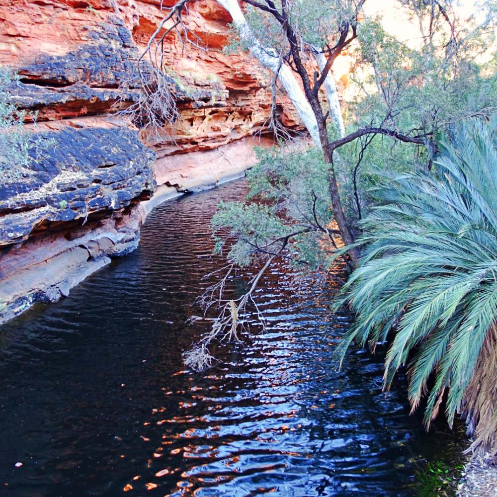Heute steht uns nochmal eine grosse Wanderung im Kings Canyon bevor. Und da es ab 11 Uhr viel zu heiss ist, um in der Sonne zu laufen, müssen wir eben früh los. Der Kings Canyon ist Teil des Watarrka-Nationalparks. Imposante Felswende und schroffe Abgründe, sowie eine kleine Oase in Form eines Flusses tief in der Schlucht, machen diese Wanderung unvergesslich. Kann ich definitiv empfehlen. Von der Vielfalt der Landschaft her, war der Kings Canyon fast das Highlight der Red Centre Tour.
