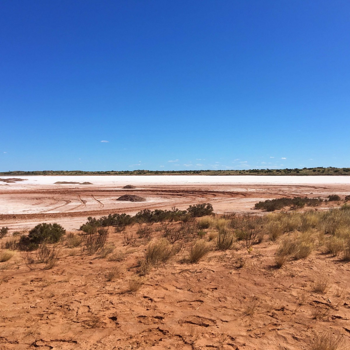 Danach geht es zurück in den Van und und Richtung Kata Tjuta. Wir unternehmen eine wunderbare 3-stündige Wanderung durch das „Valley of Winds“. Echt schön hier, fast noch spannender als am Uluru selber. Schöne Ausblicke und spannende Felsformationen. Nach der Wanderung fahren wir einige Aussichtspunkte ab, von denen man aus der Weite einen tollen Blick auf die Kata Tjuta Felsen hat. Auf dem weiteren Weg kommen wir an verschiedenen Salzseen vorbei. Riesigen weissen Flecken in der rotsandigen Landschaft. An einem stoppen wir. Wow! Wirklich ziemlich cool mal auf einem echten Salzsee zu stehen… wir machen ein paar witzige Fotos und kommen ein wenig später in unserem Nachtquartier bei Kings Canyon an.