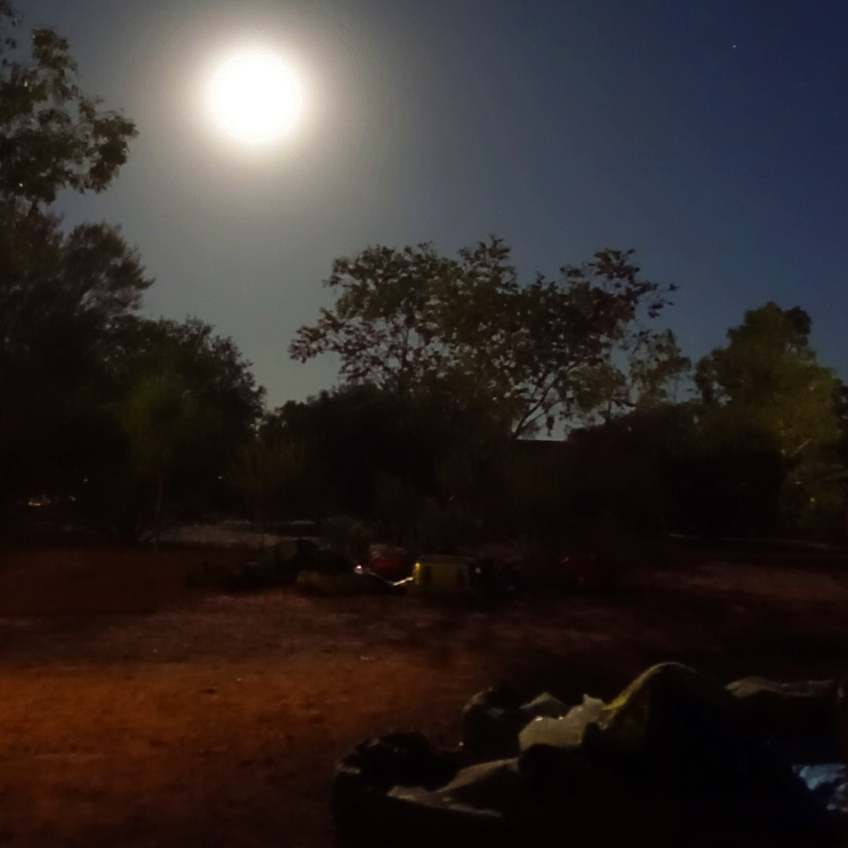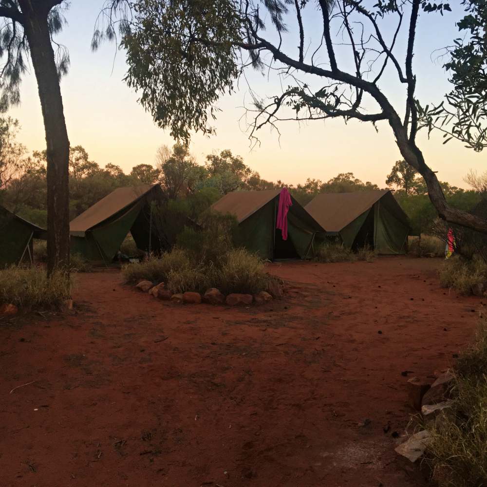 Zurück geht es ins Camp. Wir richten uns unter Vollmond und Sternenhimmel ein. Es ist viel zu warm für den Schlafsack. Und so liege ich mit Shorts und T-Shirt quasi direkt auf dem roten, staubigen Boden und hoffe, dass keine Insekten und Schlangen in der Nacht über mich krabbeln oder an mir knabbern. Schon ein bisschen seltsam und ungewohnt. Der Mond scheint so hell, dass ich kaum schlafen kann. Wurdet ihr mal vom Mond geblendet?! Ich jetzt schon 😉 Irgendwann falle ich auf der harten Matratze in einen etwas unruhigen Schlaf. Um wenige Stunden später, noch in der Dunkelheit, von lauter Musik geweckt zu werden. Unser Guide spielt einen Song, der mich lange an diese Tage erinnern wird. Es ist „Air“ von Talisman. An sich schon irgendwie spuky & magic. Aber morgens um 4:30 unter Sternen im australischen Outback ist der Song sowas von unglaublich passend, dass ich heute noch eine Gänsehaut bekomme wenn ich ihn höre.