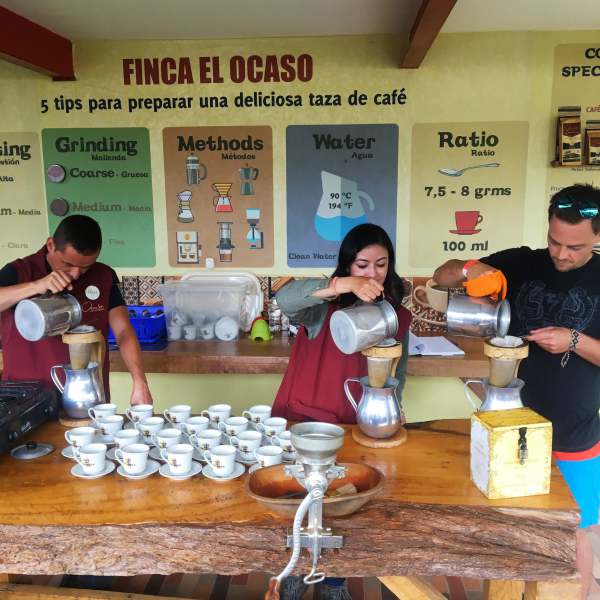 - Besuche eine Kaffefarm. Hey, du bist in der Kaffeeregion! Da darfst du das natürlich nicht auslassen. Über mein Hostel habe ich mich dort anmelden lassen und bin dann selber hingelaufen (ca. 1 Stunde), man kann aber auch mit einem der Jeeps mitfahren die immer am Hauptplatz warten. Der Besuch an sich war echt interessant, wir haben Kaffee geerntet und uns wurden die einzelnen Schritte der Kaffeeherstellung sehr anschaulich erklärt. Am Ende gab es noch einen Kaffee gratis. Ich war danach wirklich ein bisschen schlauer! 🙂