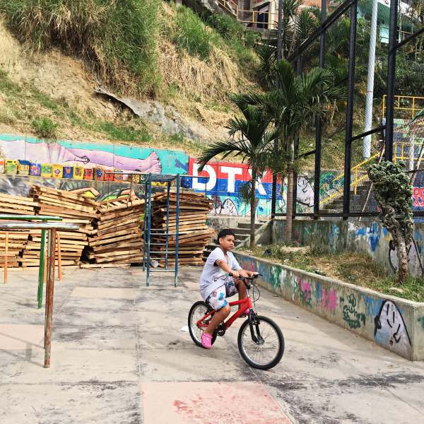 Bei näherem Hinschauen gibt es aber deutliche Unterschiede in den Stadtvierteln. So hat Medellin sehr moderne und internationale Viertel, mit schickem modernen Hochhäusern, die atemberaubende Ausblicke aus den oberen Etagen bieten z.B. in El Poblado. El Poblado ist generell „das“ Touristenviertel. Einige Ecken beheimaten richtig kreative Klamotten- und Designläden, wie man sie in hippen europäischen Großstädten finden kann. Es gibt Restaurants für wirklich jeden Geschmack, auch Veganer oder Sushi-Fans werden hier fündig. Und alles zu verkraftbaren Preisen. Ich habe diese Vielfalt an Essen geliebt! Daneben findet man zahllose Bars und Clubs, die Ausgehszene ist legendär. Und natürlich sieht man jede Menge junger Leute der Nomadenszene in Cafés mit ihren Laptops sitzen, wenn sie nicht in einem der vielen Coworking-Spaces eingecheckt sind. Und das Viertel ist sehr grün, manchmal fühlt man sich fast wie im Dschungel.