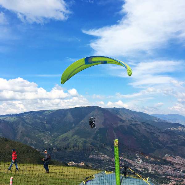 - Paragliding über Medellin. Ich liebe Höhe, Abenteuer und ich liebe es Städte von oben zu sehen. Das Paragliding in Medellin bietet genau das. Klar, ist es nicht für jedermann und man muss sich überlegen wieviel Risiko man eingehen mag. Ich habe es jedenfalls sehr genossen über die City zu gleiten. Anbieter gibt es auch hier auch verschiedene. Ich war mit „ParaglidingMedellin“ unterwegs und kann es soweit empfehlen. Ich hatte das Paket online gebucht, bei dem man oben an der Seilbahn abgeholt wird (man muss selber mit den Bahn auf den Berg fahren) und zur Starterwiese gebracht wird. Daran denken genug Geld einzupacken, ich hatte es vergessen und musste mir die umgerechnet 80 Cent für die Rückfahrt mit den der Bahn „leihen“.