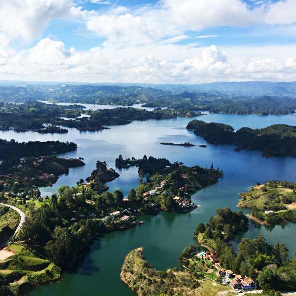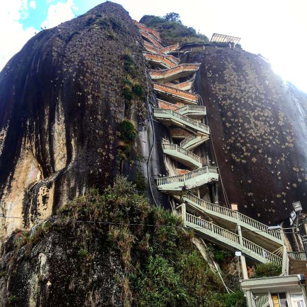 - Tagesausflug nach Guatape und zum Piedra del Peñol. Ein absolutes Must-See sind Guatape und der Piedra del Peñol. Man kann entweder länger bleiben und ein paar Übernachtungen einplanen oder einfach einen Tagesausflug von Medellin unternehmen. Man fährt dann morgens früh mit dem Bus los und ist ca. 2 Stunden unterwegs. An heißen Tage würde ich empfehlen zuerst den 220m hohen Piedra del Peñol zu besteigen, da es gute Kondition erfordert die riesige Treppe hochzukraxeln. Aber der grandiose Ausblick entlohnt für alle Mühen! Guatape liegt eine Bus-Station weiter und hat ein sehr hübsches historisches Zentrum mit unglaublich farbenfroh angemalten Häusern und netten Cafés und Shops. Ich habe mich sofort verliebt in dieses Städtchen! Gegen 17h spätestens sollte man sich auf den Rückweg nach Medellin machen (Achtung, checken wann der letzte Bus fährt!).