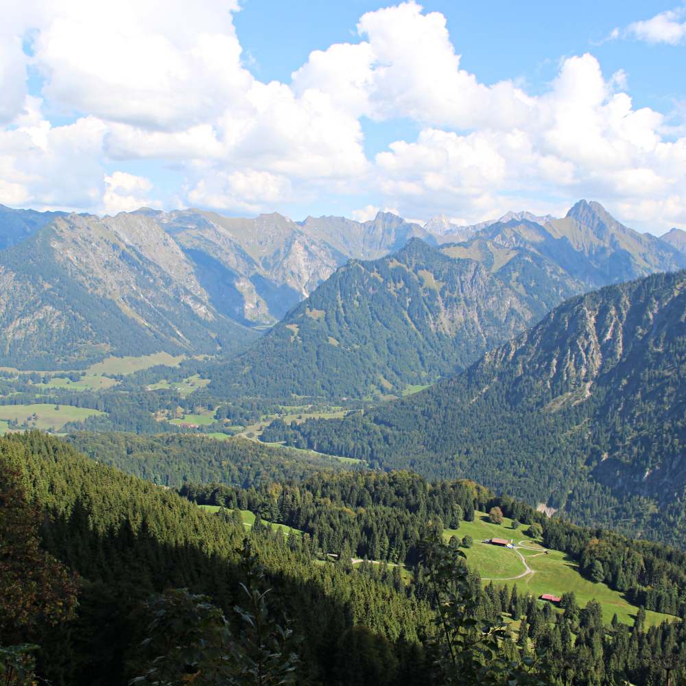 Und trotzdem: Der Blick ist einfach grandios. Ich kann es nicht anders sagen. Dieses Alpenpanorama kann locker mit den schönsten Orten dieser Welt mithalten. Echt. Ich bin ein bisschen stolz auf mein Deutschland, was ich so gar nicht kenne. Allgäu ♥ Das gesamte Gebiet rund im Obertsdorf hat einige schöne Berge, Gipfel und Wanderwege zu bieten, die Berge erreichen hier eine Höhe von über 2600 Metern. Die folgenden Gipfel haben wir bewandert: