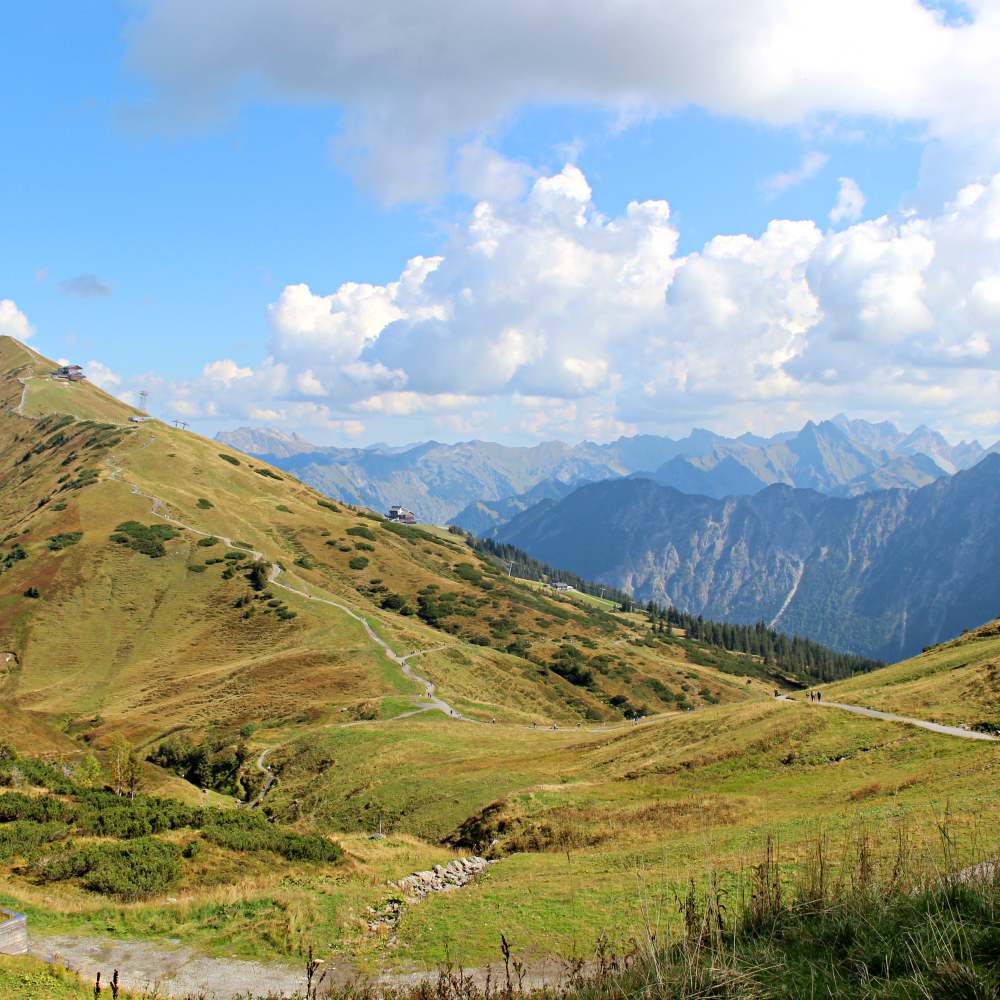 Das Fellhorn ist ein 2037 m hoher Berg. Sein Gipfel liegt auf der österreichisch-deutschen Grenze zwischen Kleinwalsertal und Stillachtal. Es zählt zu den Blumenbergen der Allgäuer Alpen und ist für seine großen Alpenrosenfelder bekannt. Ab dem Fellhorn-Gipfel kann man verschiedene Wanderungen machen. Von einfach und kurz, zu richtigem Gekraxel und 6-7 Stunden lang. Immer findet sich auch eine Alp zum einkehren. Es ist wirklich für jeden was dabei. Wunderschön fand ich die Gratwanderung, hier läuft man auf einem schmalen Grat ganz oben entlang von Gipfel zu Gipfel und hat so die ganze Zeit ein 360 Grad Panorama. Absolute Empfehlung!